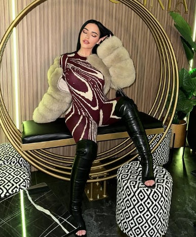 Model is wearing size Medium in color Beige